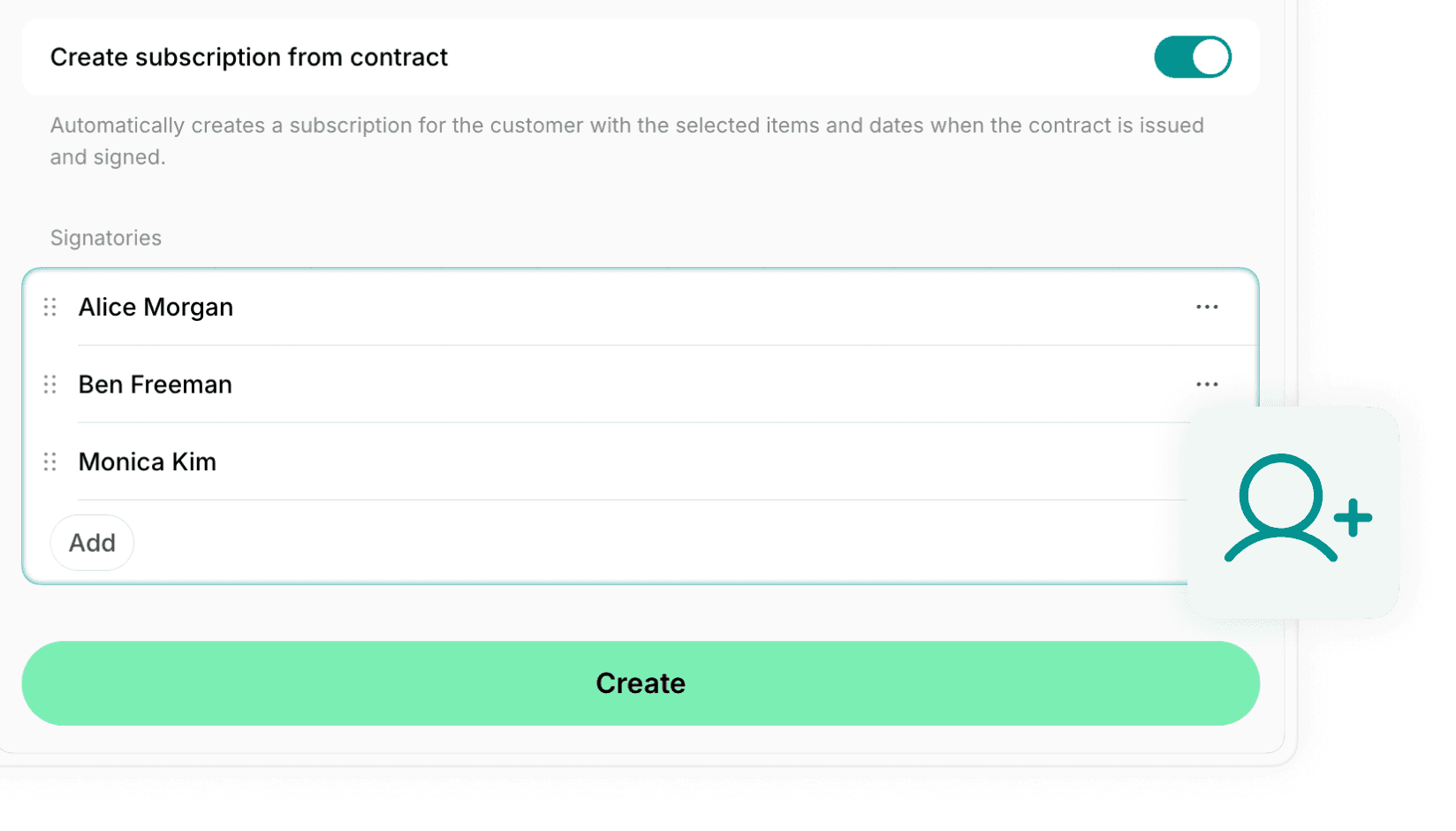 - Apply discount coupons directly during contract creation to keep billing seamless and accurate.