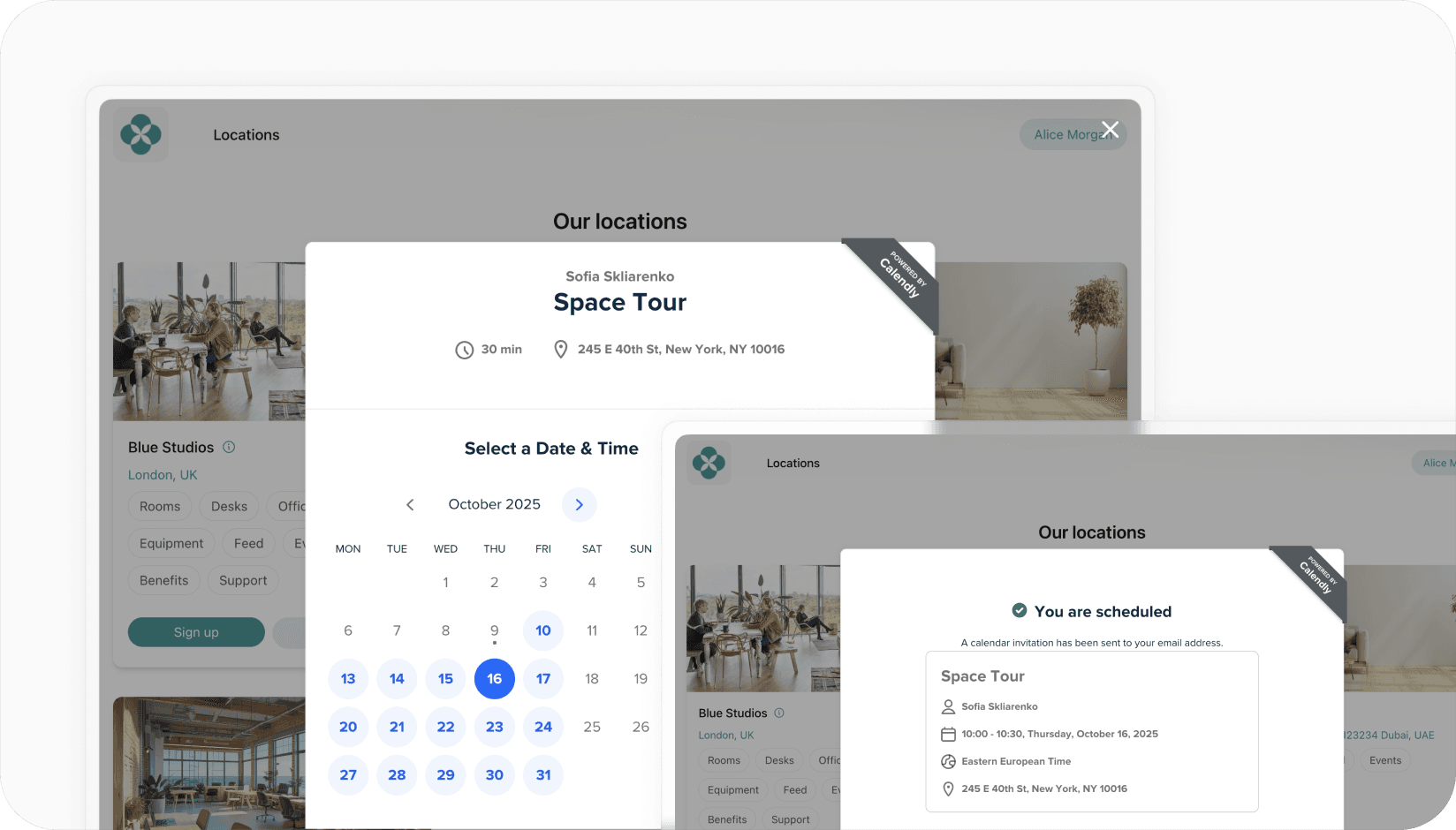 - Let potential customers schedule tours based on your real-time availability.