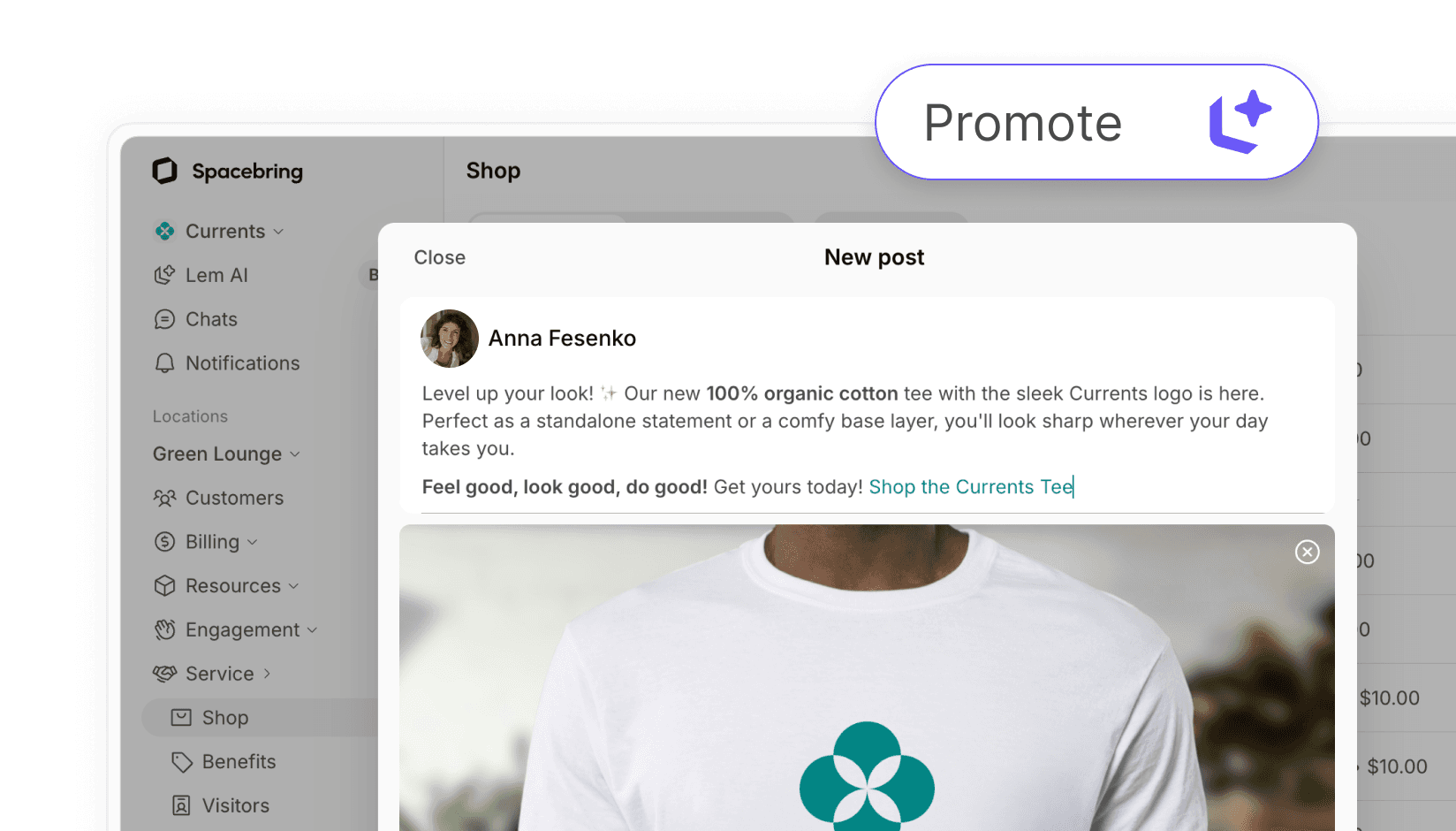 Lem AI can help you draft community feed posts about events, benefits, and shop products. It creates an appealing description and a clear call to action, giving you a good place to start.